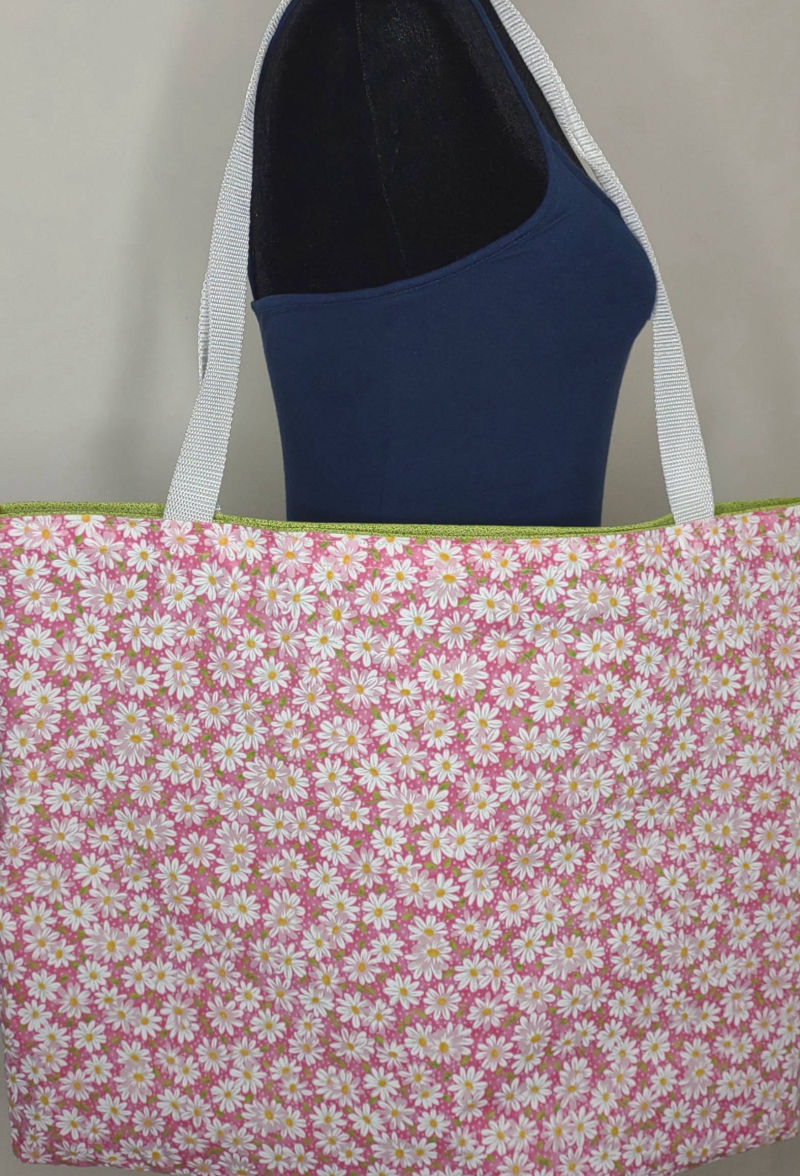 A smaller version of the tote bag with a zipper. Great for multiple uses including cosmetics bag, brush holder and more!